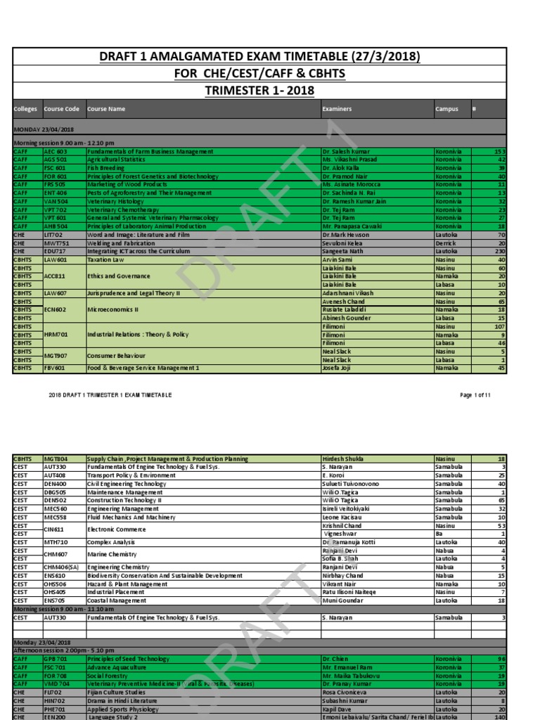 Timetable and draft are semantically related. It's therefore not advisable to use the draft timetables to plan around, as circumstances may require. When drafting your timetable, make a shortlist of preferred times for each class. The teaching timetable are provided semesterwise in each academic year. Draft is timetable without any constraints.